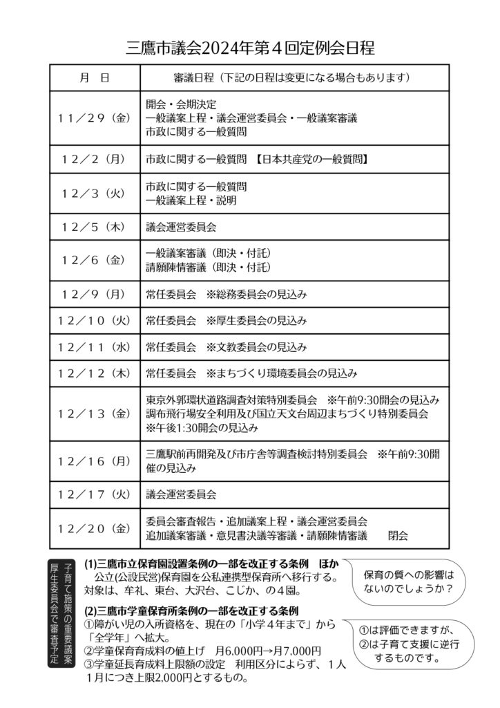 2024年三鷹市議会第4回定例会が始まります